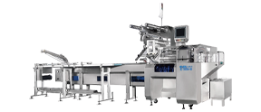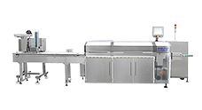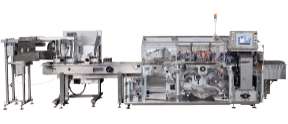 大森解决方案:使用S7680高速枕包机,并配置Y型结构两通道供料机,与前端铝塑机两道出口连接,满足了枕包机的稳定供料,又缩短了设备总长。枕包机单道输出与装盒机连接,实现装盒机的稳定供料,避免装盒机制作两套上料机。